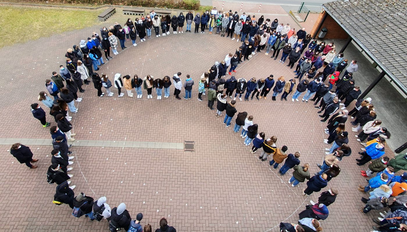 Die Schüler- und Lehrerschaft der Werra-Realschule gedenken der Menschen, die in der Ukraine Krieg und Leid erfahren. Als kleines Zeichen der Solidarität wurde um 11.00 Uhr eine Schweigeminute abgehalten.