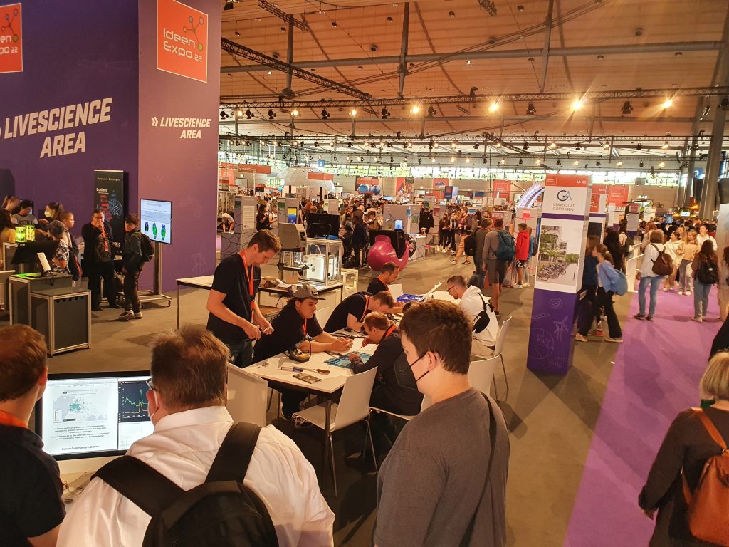 Kurz vor den Sommerferien will die IdeenExpo den Forschergeist von Schülerinnen und Schülern entfachen und Lust auf Technik und Naturwissenschaften machen. Auch der 8. und 9. Jahrgang der Werra-Realschule besuchte den Erlebnispark mit 720 Mitmach-Exponaten am 06.07.2022. Die Schülerinnen und Schüler informierten sich in den Messehallen auf dem Expogelände in Hannover zu 13 Themenbereichen – neu waren in diesem Jahr die Themenbereiche „Planet Nachhaltigkeit“ und „Faszination Weltraum“. Die IdeenExpo war 2007 als gemeinsame Initiative von Politik und Wirtschaft gegründet worden, um junge Menschen an die MINT-Fächer (Mathe, Informatik, Naturwissenschaften und Technik) heranzuführen. Für Unternehmen ist sie eine Chance, angesichts des Fachkräftemangels schon frühzeitig junge Menschen für sich zu gewinnen.