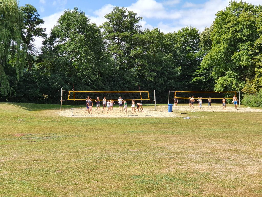 Außerhalb des Beckens wurde mit viel Spaß bei der Sache Volleyball oder Wikinger Schach gespielt.