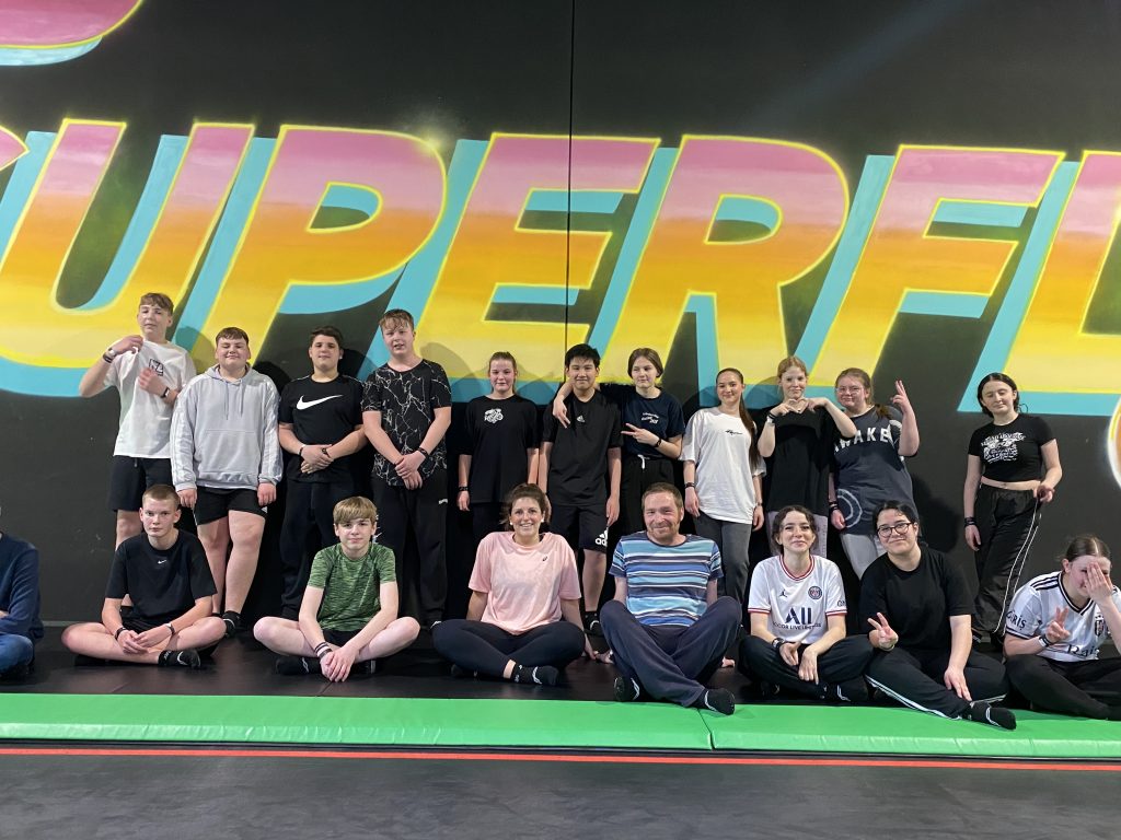 Am Freitag, den 21.04.2023 besuchte die Klasse 8b die Trampolinhalle in Kassel. Trotz Bahnstreiks erreichten wir pünktlich um 9:30 Uhr das Superfly und durften nach einem kurzen Einweisungsvideo direkt auf die 3.500 m2 große Fläche, auf der uns unterschiedlichste Trampoline, Parcours und Klettermöglichkeiten erwarteten. Rund 90 Minuten konnten sich die Schülerinnen und Schüler aber auch die Lehrpersonen so richtig austoben. Zwischendurch konnten sich die Schülerinnen und Schüler mit Essen und Getränken stärken. Nach einem gelungenen und sportlichen Tag ging es gegen 13 Uhr wieder mit der Bahn Richtung Hann. Münden.