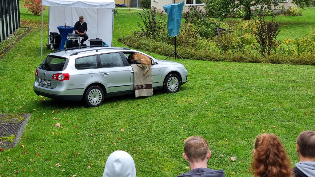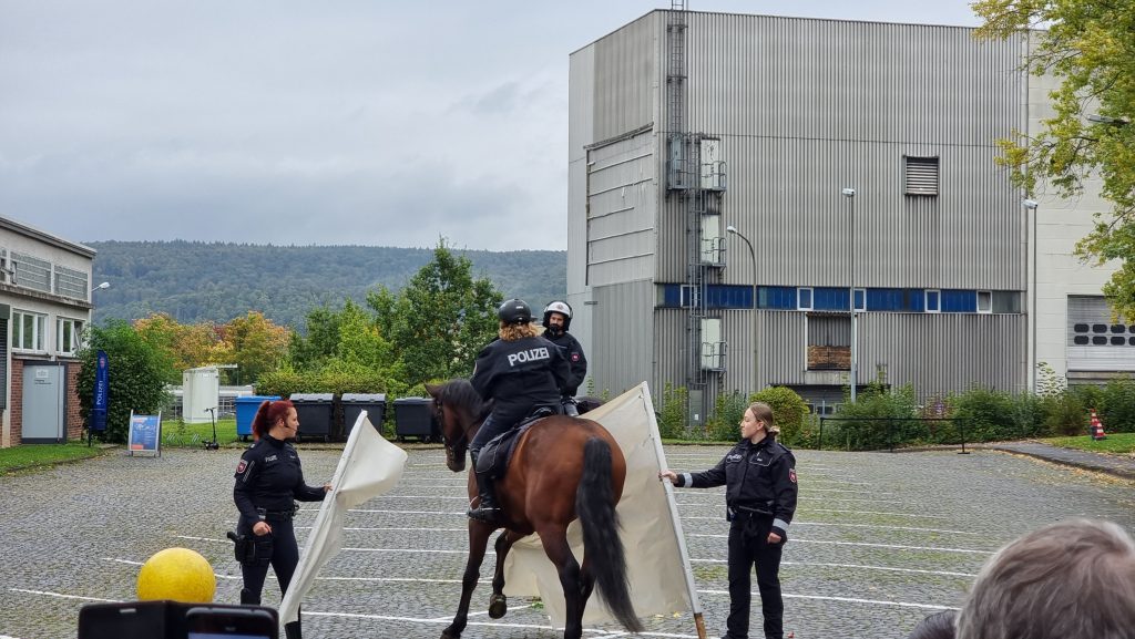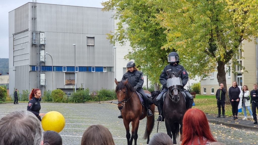 Beim Tag der offenen Tür der Polizeiakademie in Hann. Münden wurde den Schüler/innen der Werra-Realschule am 12.10.2023 viel geboten. Die Schüler/innen konnten den Polizeiberuf kennenlernen und unter anderem die Vorführung der Reiterstaffel aus Hannover, die Diensthundeführer der Polizei aus Göttingen mit ihren Diensthunden und das Abwehr- und Zugriffstraining bestaunen.
